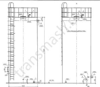 * - cтандартной комплектации: стенка; днище; крыша; шахтная лестница; лестницы, площадки, ограждения по крыше; люки. Общий вид вертикального резервуара объемом 100 м3
